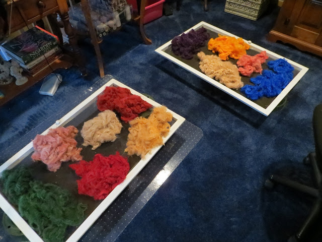 We had a wonderful time dyeing our fiber and creating our batts. Some of the colors worked out really well and some didn't work as well as we had hoped. However, that's the fun part of experimenting isn't it?