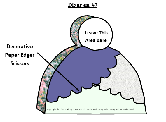 I brushed modpodge on the back of the scrapbook strips and then pressed them against the bottom lips until they were secure and met evenly in the back (See Diagram #6).